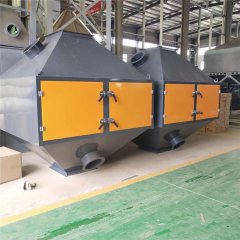 先廢氣經(jīng)干式過濾器去除部分粉塵顆粒物,然后將符合
